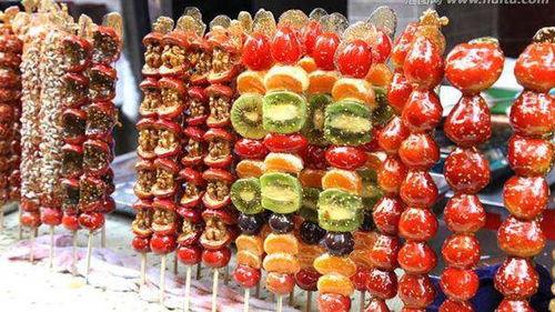 说起冰糖葫芦,那可是我国传统的美食之一。它起源于宋代,距今已有千年历史。冰糖葫芦主要由山楂果串成,外面裹上一层晶莹剔透的糖衣,酸甜可口,回味无穷。而如今,这个经典小吃已经演变出了无数种口味,比如草莓、蓝莓、葡萄等,让人目不暇接。